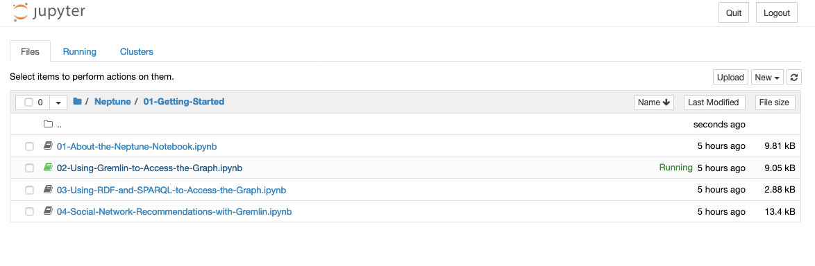 - In the Jupyter window, open the Neptune directory, then the Getting-Started directory.