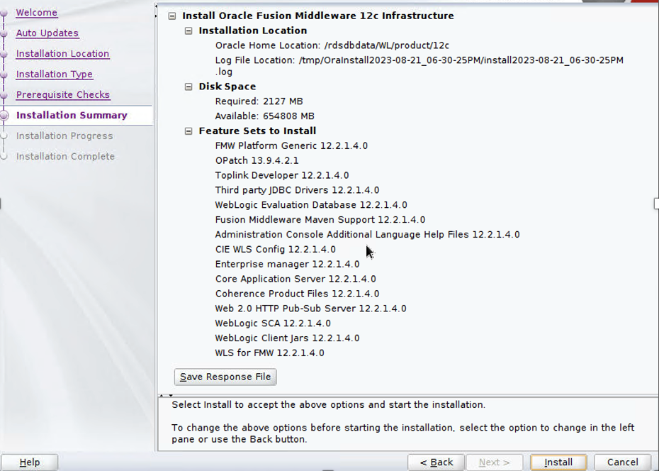 Optionally, if you want to install Fusion Middleware 12c with an alternative temporary directory other than /tmp, refer to How to Install FMW 12c With Alternative Temp Directory other than "/tmp" (Doc ID 2245257.1).