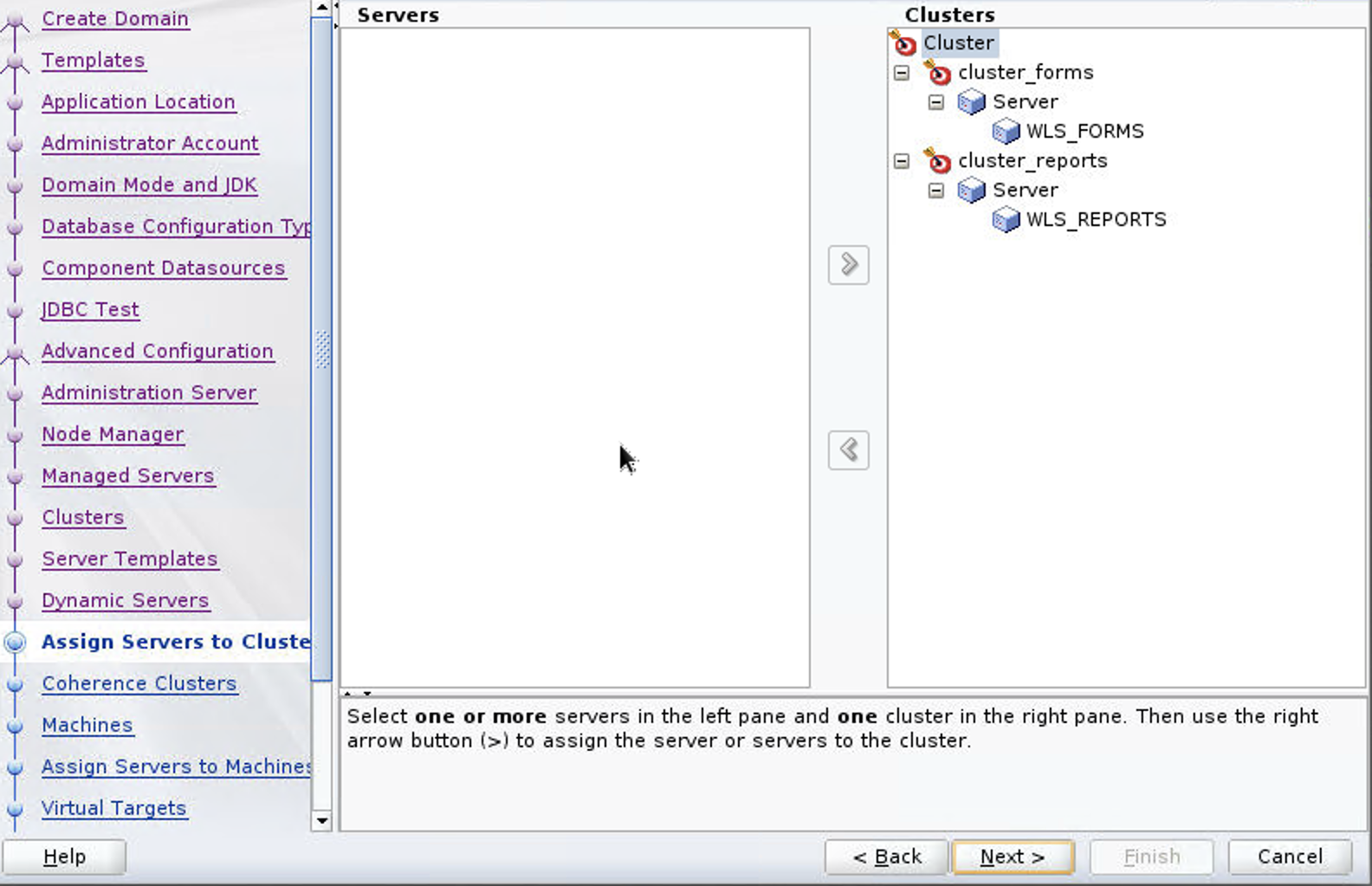 - On the Assign Servers to Clusters page, assign the servers and choose Next.