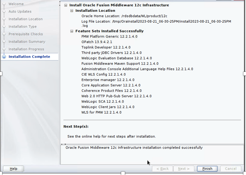 - When the installation is complete, review the installed components and choose Finish.