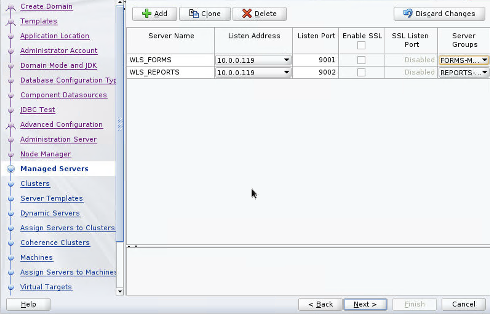 - On the Managed Server page, add the Oracle Forms and Report servers to