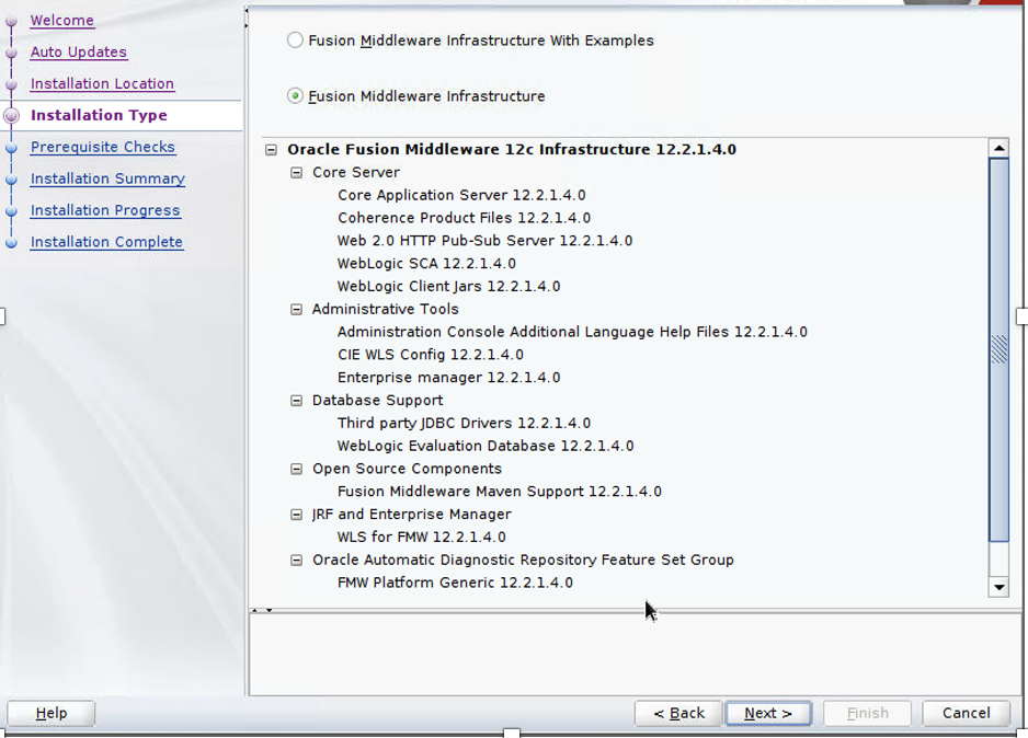 For more information about different Oracle Forms releases, refer to Oracle Forms and Reports. - Select Fusion Middleware Infrastructure and choose Next.