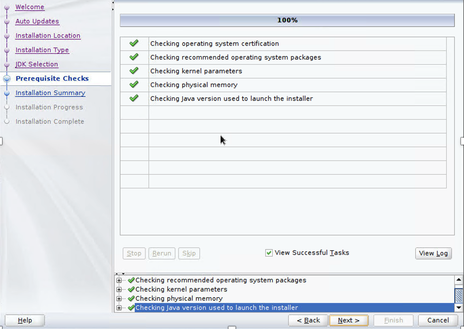 - On the Prerequisite Checks page, make sure that all checks are complete and choose Next.