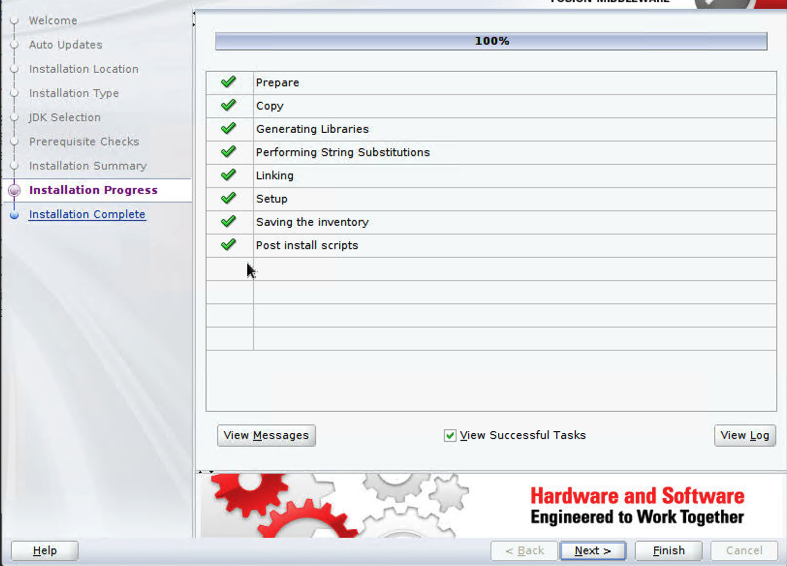 - On the Installation Progress page, ensure that all steps are complete and choose Next.