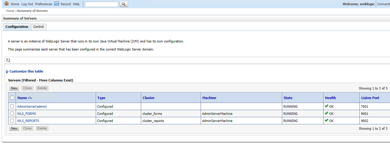 WLS_FORMSandWLS_REPORTSin their respective listener ports 9001 and 9002.