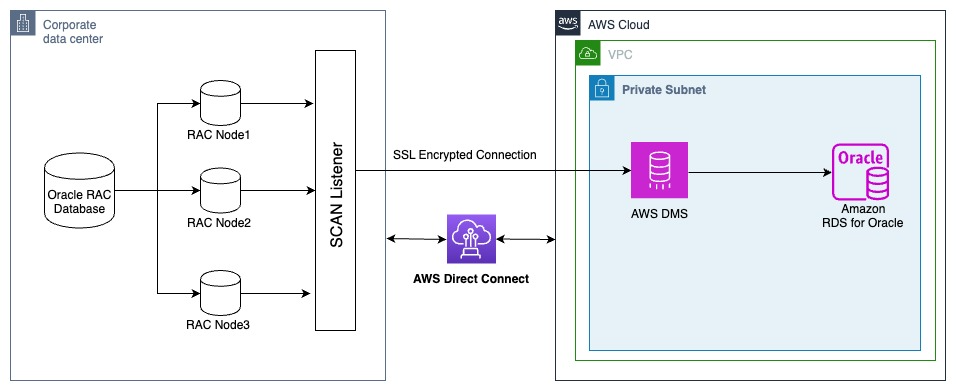 As organizations migrate their Oracle databases to AWS, ensuring data security during transit is critical. You can encrypt connections for source and target endpoints by using Secure Sockets Layer (SSL). SSL encryption is often preferred for Oracle RAC to AWS DMS migrations because it provides end-to-end encryption at the application layer and offers simpler certificate management compared to other solutions. For organizations already using Oracle Wallet for other database connections, SSL also provides consistency with existing security practices, making it a natural choice for maintaining uniform security standards across the database environment.
