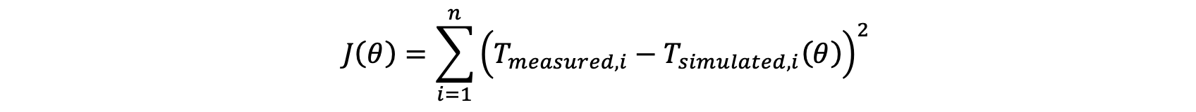 Mathematically, this process minimizes an objective function representing the error between measured and simulated temperatures: