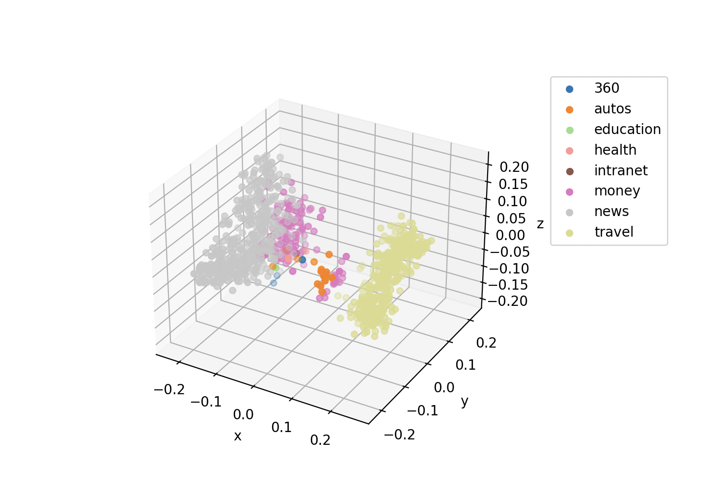 [Fig 1] Three-dimensional visualization of product embeddings showing how products of similar category are clustered together in the latent space