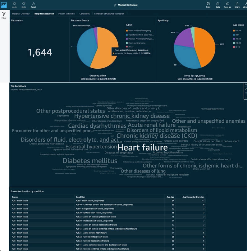 - Explore trends about patients or population and personalize care at the individual level using Amazon QuickSight (as shown in Fig. 4).