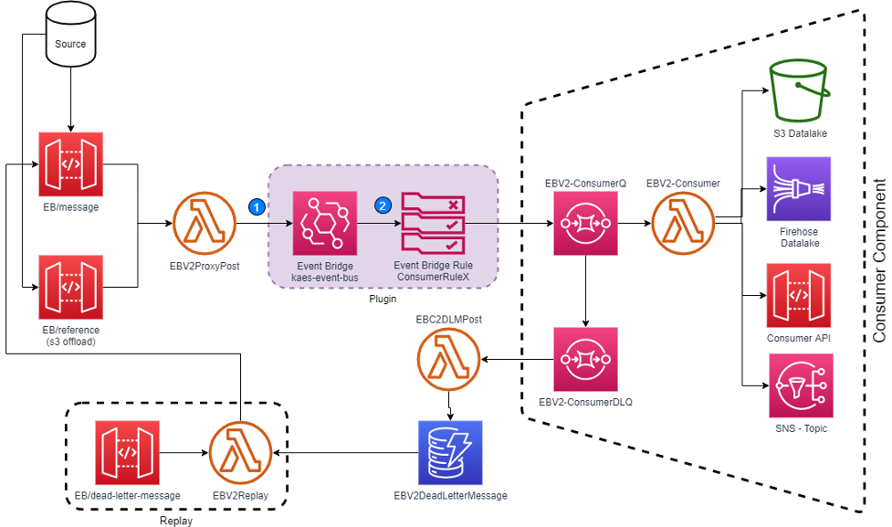 - Instead of storing consumer information in Amazon DynamoDB, KAES used Amazon EventBridge to route messages.