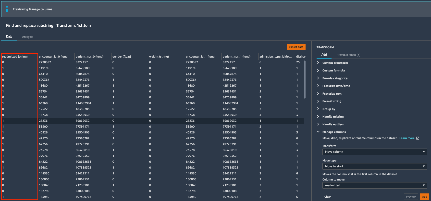 Data Wrangler comes with over 300 built-in transforms, which require no coding. Let’s use built-in transforms to apply a few key transformations and prepare our training dataset.