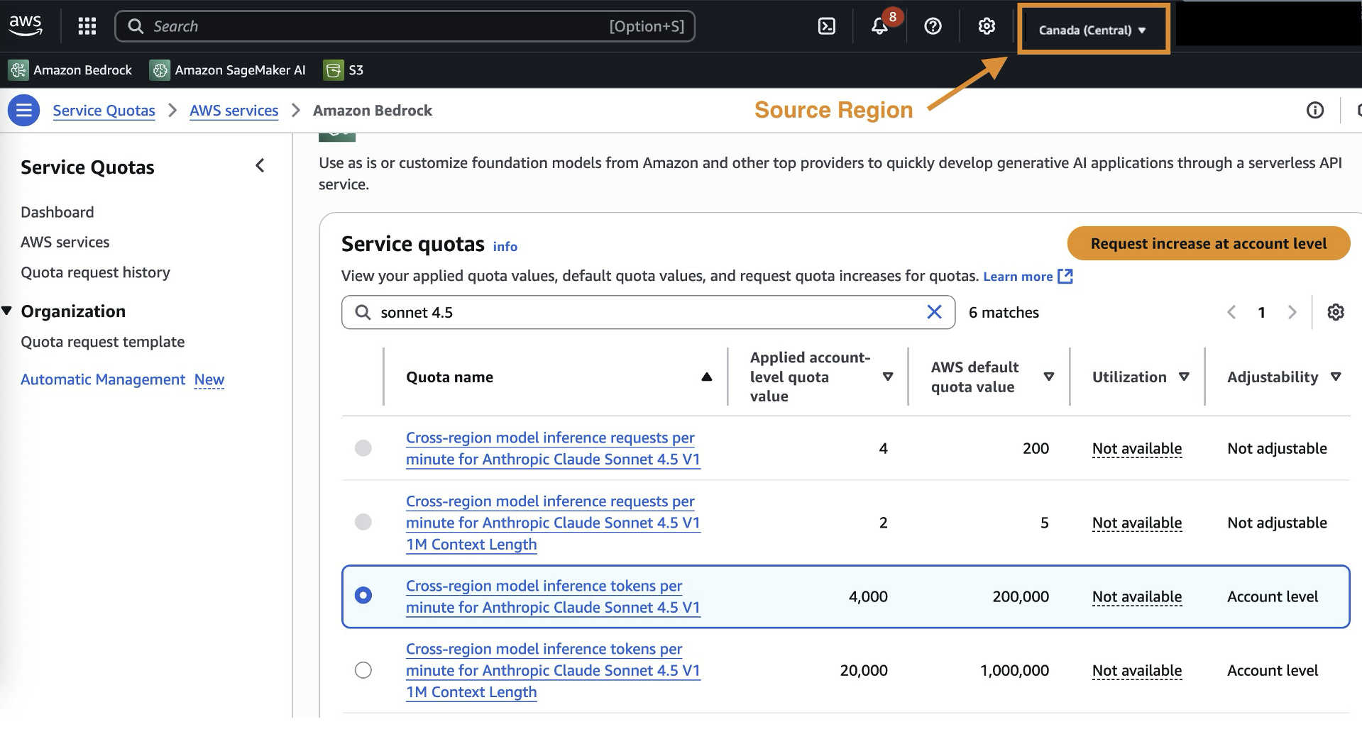 When using CRIS from Canada, quota management is performed at the source Region level (ca-central-1). This means quota increases requested for the Canada (Central) Region apply to all inference requests originating from Canada, regardless of where they’re processed.