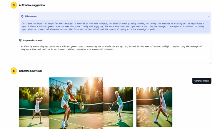 “We started to experiment, and after every iteration, we found more options. For example, what if we looked at information from previous campaigns? Many previous initiatives had the same goals and how they performed can be used as useful information. Using visuals together with proven campaign elements would give the creative team a stronger foundation which would help them save time in the early stages of creating ideas.