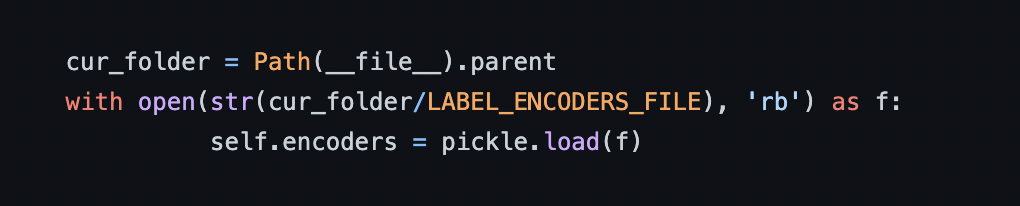 Recall that we created the label_encoders.pkl file in the first notebook. There’s nothing more to do for category encoding other than include it in our model.py file for preprocessing.