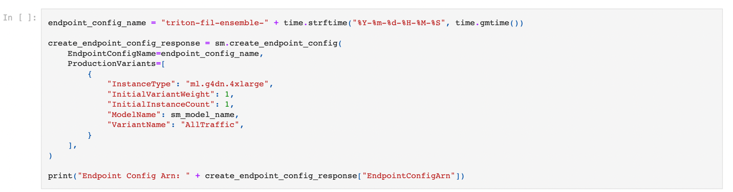 With the preceding model, we create an endpoint configuration where we can specify the type and number of instances we want in the endpoint.