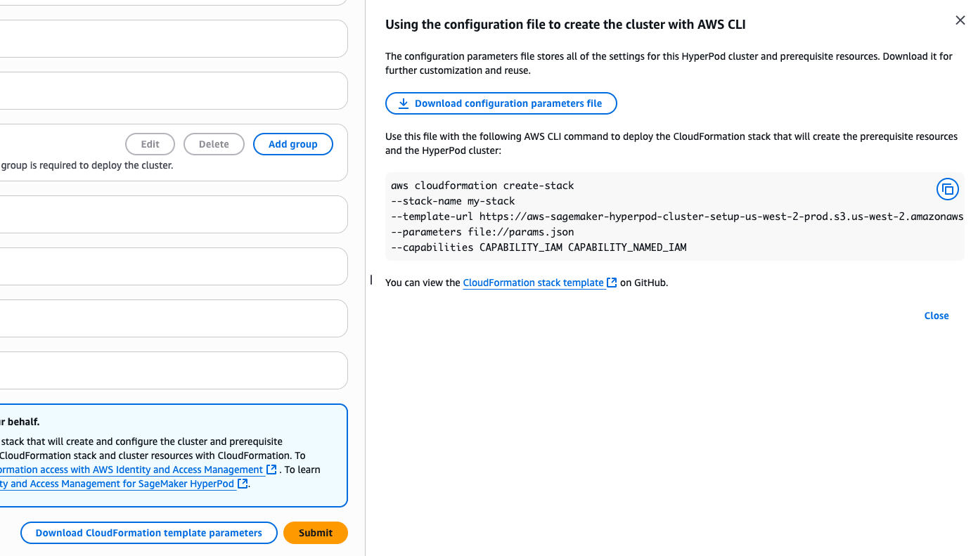SageMaker HyperPod now offers an enhanced one-click deployment experience to set up purpose-built, resilient infrastructure for training and deploying large ML models. With the quick setup option, you can take advantage of prescriptive defaults, and the custom setup option provides the flexibility to tailor distributed training environments to meet specialized requirements. With IaC through AWS CloudFormation, you get a declarative expression of your SageMaker HyperPod cluster environment that can be version controlled, further customized, and integrated into continuous delivery pipelines.