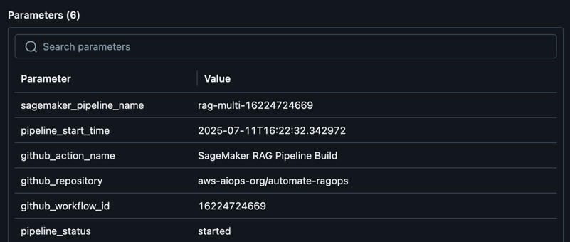When your SageMaker RAG pipeline definition is in place, you can implement robust CI/CD practices by integrating your development workflow and toolsets already enabled at your enterprise. This setup makes it possible to automate code promotion, pipeline deployment, and model experimentation through simple Git triggers, so changes are versioned, tested, and systematically promoted across environments. For demonstration, in this post, we show the CI/CD integration using GitHub Actions and by using GitHub Actions as the CI/CD orchestrator. Each code change, such as refining chunking strategies or updating pipeline steps, triggers an end-to-end automation workflow, as shown in the following screenshot. You can use the same CI/CD pattern with your choice of CI/CD tool instead of GitHub Actions, if needed.