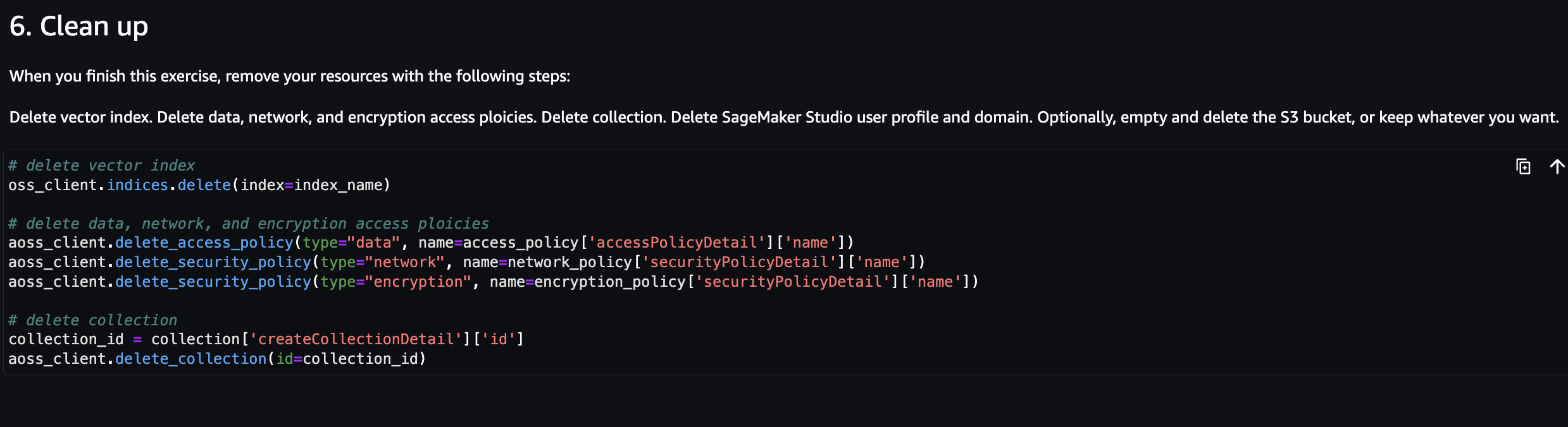 To avoid incurring future charges, delete the resources used in this solution. You can do this by running the cleanup section of the notebook.