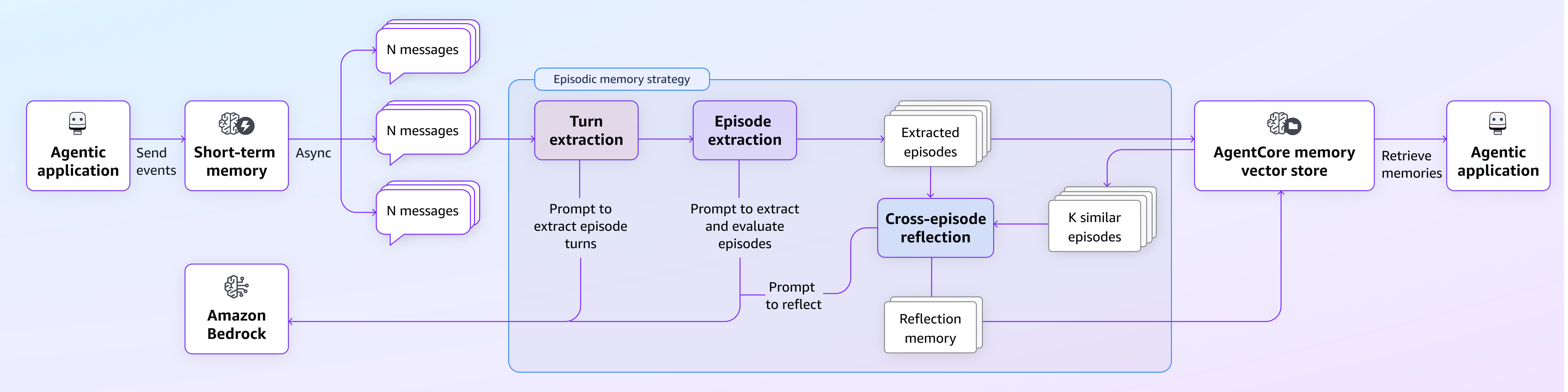 In the next section, we describe how to build an AgentCore episodic memory strategy, covering its extraction, storage, retrieval, and reflection pipeline and how these components work together to help transform experience into adaptive intelligence.