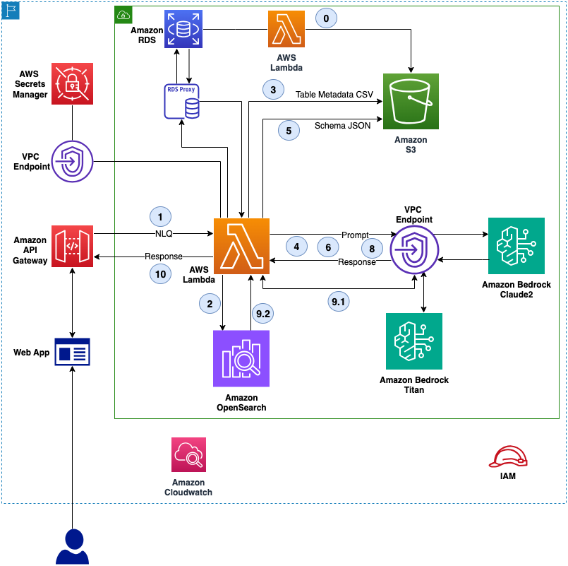 - It stores the question and SQL query as a vector for reuse in the OpenSearch Service index.