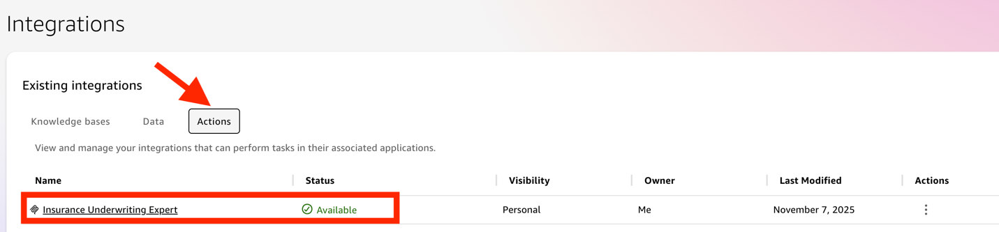 - For Name, enter a name (for example, Insurance Underwriting Expert).