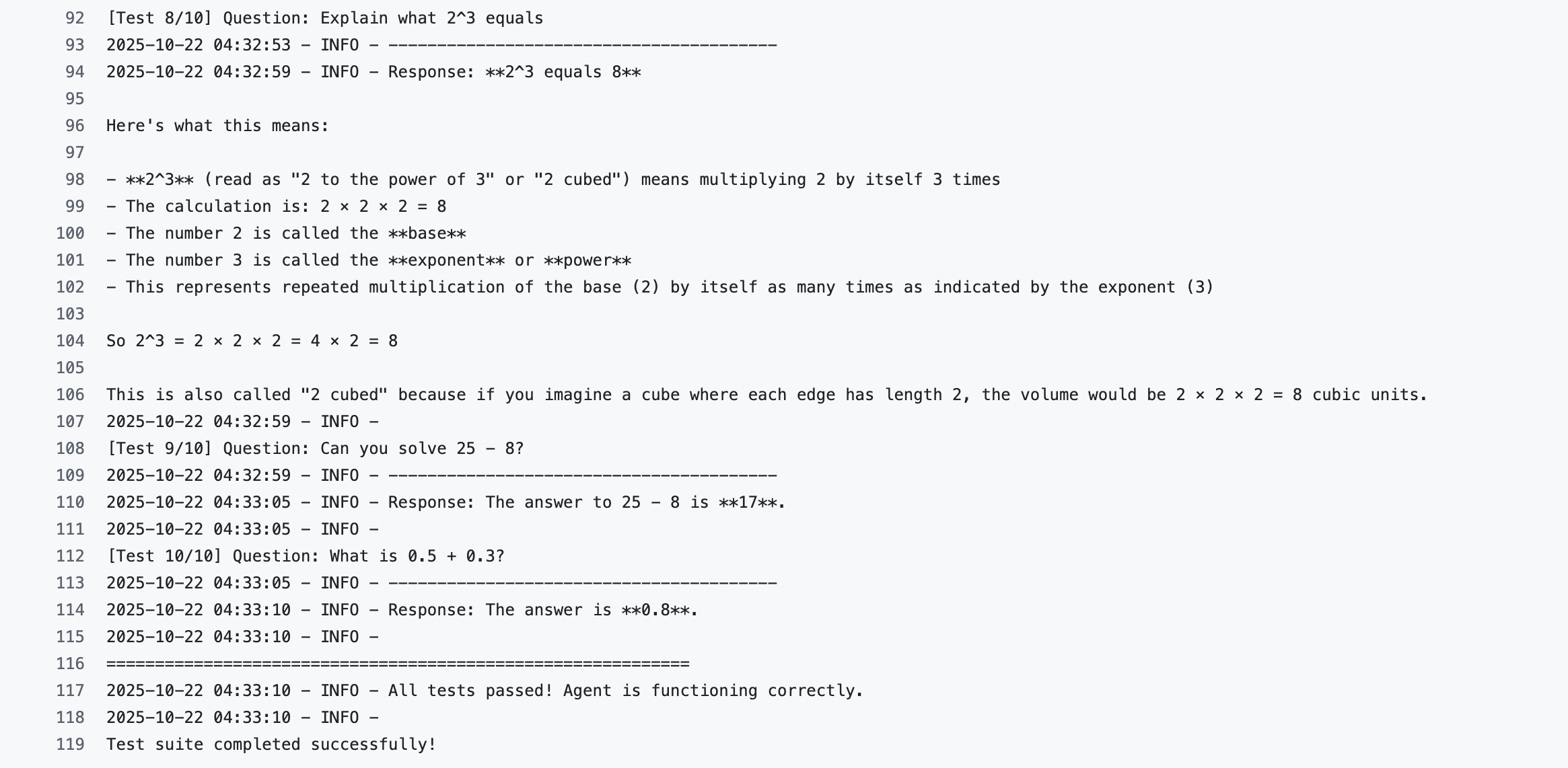 After the agent is deployed, we will verify its functionality by triggering the Test Agent workflow manually via workflow dispatch option.