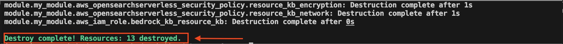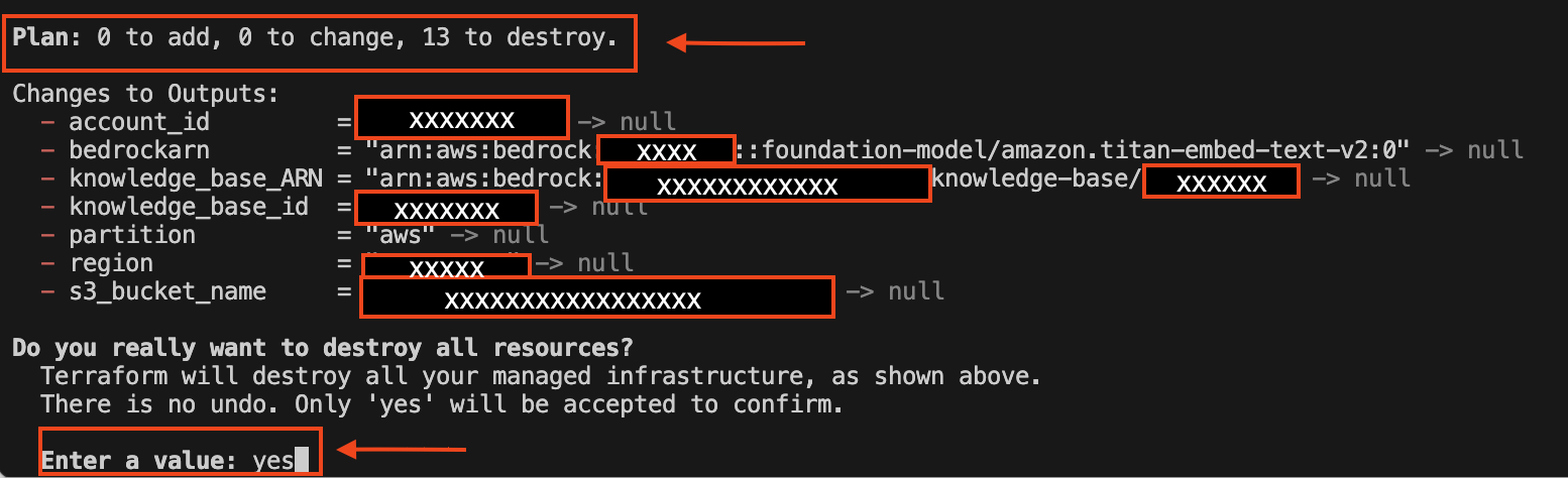 - The command will prompt you to confirm the destruction of the resources. Enter