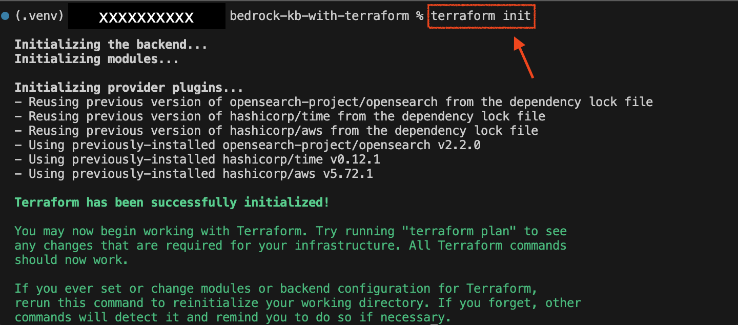 Run the following command to prepare your working directory (Terraform folder):The following image shows the output of the