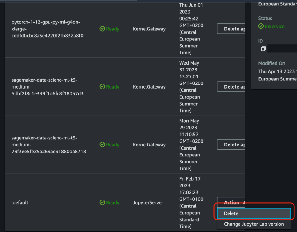 - Delete and restart the Jupyter Server apps for the SageMaker Studio user profiles.