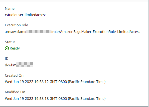 The following screenshot shows the rstudiouser-limitedaccess profile details.