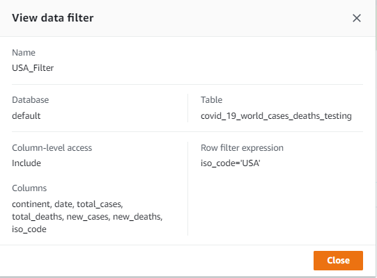 Use Lake Formation row-level and column-level security access