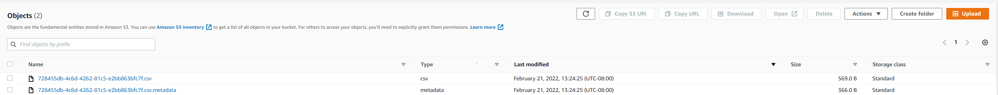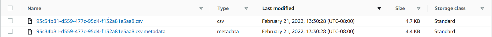 The following screenshot shows the output files in the S3 bucket.