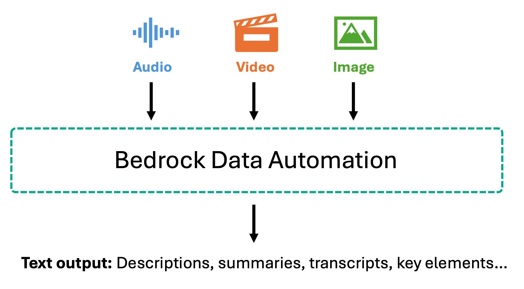 Alternatively, Bedrock Data Automation converts multimedia into rich text descriptions and transcripts before embedding, providing high-accuracy retrieval over spoken content. Your choice depends on whether visual context or speech precision matters most for your use case.