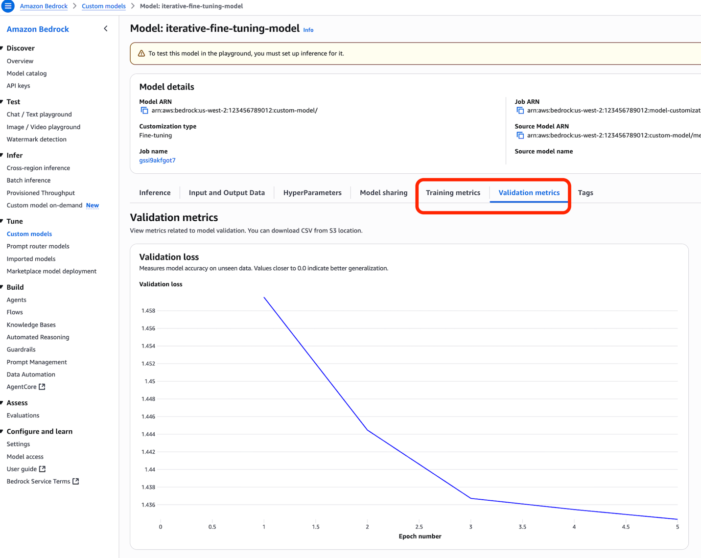 To get started with iterative fine-tuning, access the Amazon Bedrock console and navigate to the Custom models section. For detailed implementation guidance, refer to the Amazon Bedrock documentation.
