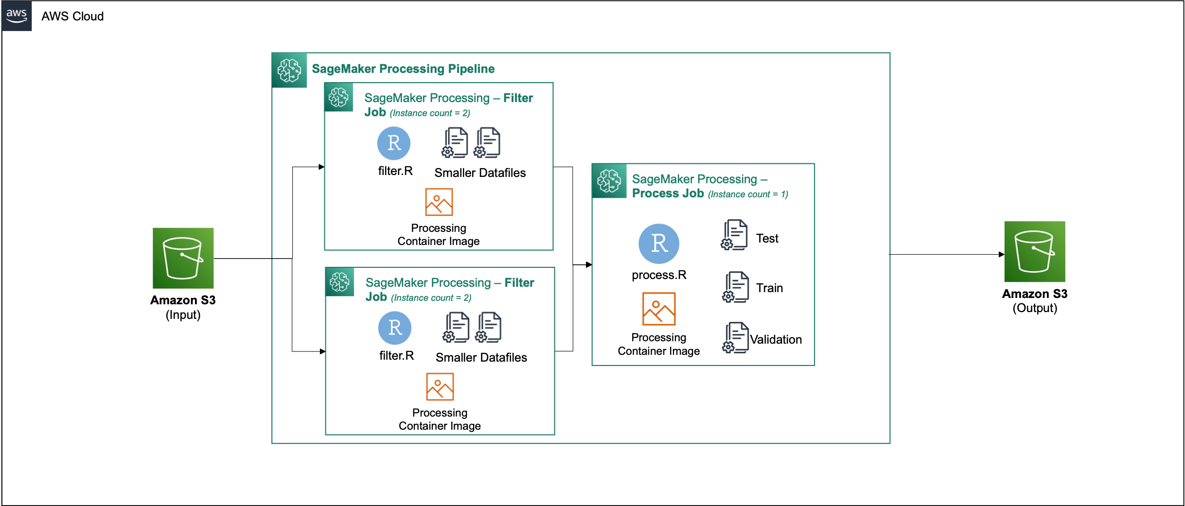 Within Amazon SageMaker, many customers use SageMaker Processing to help implement parallel data processing. With SageMaker Processing, you can use a simplified, managed experience on SageMaker to run your data processing workloads, such as feature engineering, data validation, model evaluation, and model interpretation. This brings many benefits because there’s no long-running infrastructure to manage—processing instances spin down when jobs are complete, environments can be standardized via containers, data within Amazon Simple Storage Service (Amazon S3) is natively distributed across instances, and infrastructure settings are flexible in terms of memory, compute, and storage.