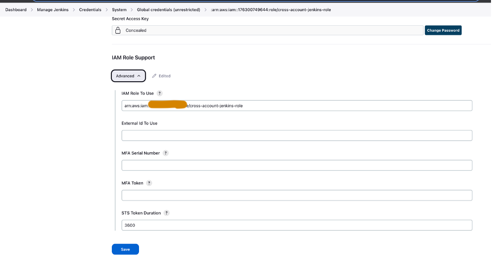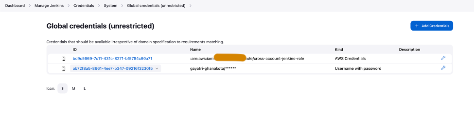 - Set up AWS credentials in Jenkins using the cross-account IAM role (