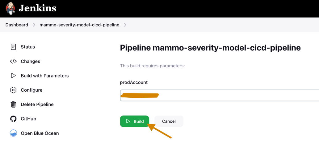 - Go to the Jenkins UI, choose Build with Parameters, and trigger the CI/CD pipeline created in the previous steps.