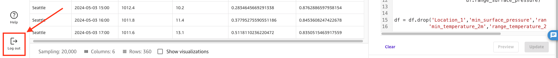 Choose Log out in the left pane to log out of the Amazon SageMaker Canvas application to stop the consumption of SageMaker Canvas workspace instance hours. This will release all resources used by the workspace instance.