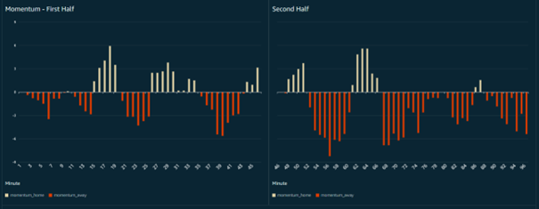 The Match Momentum metric represents the culmination of an extensive collaboration between football experts and data scientists. The algorithmic expertise of Sportec Solutions, developed through deep understanding of football dynamics, provides the foundation for accurate Match Momentum calculation. This technical innovation, combined with the football knowledge of DFL and the cloud infrastructure of AWS, creates a comprehensive solution that enhances the viewing experience for fans worldwide.