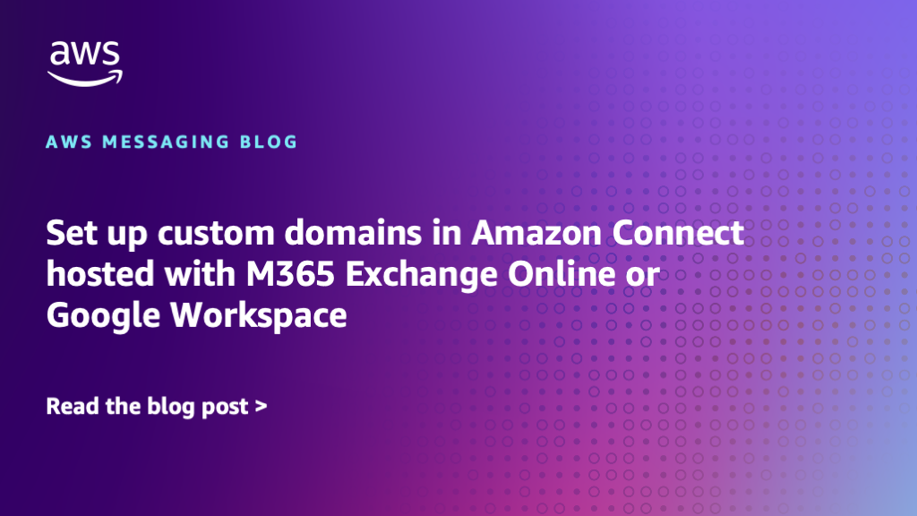 In this post, we demonstrate how to set up custom email domains in Amazon Connect when using Microsoft 365 Exchange Online or Google Workspace as your email server. The solution enables organizations to maintain their existing email infrastructure while leveraging Amazon Connect’s email capabilities through Amazon SES integration, allowing customers to continue using familiar email addresses while providing enhanced customer service features.