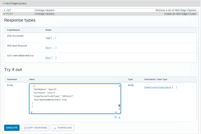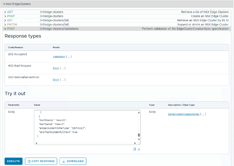 Next, use the JSON file which will be posted to the SDDC Manager API to create a new NSX Edge Cluster. Requirements for this JSON