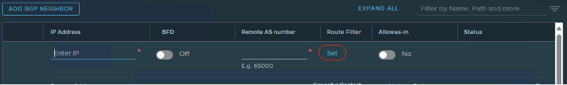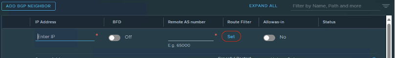Figure 31: NSX Tier-0 BGP Route Filter Console