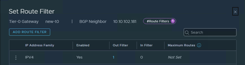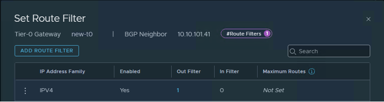 Figure 32: NSX Tier-0 BGP Route Filter Settings