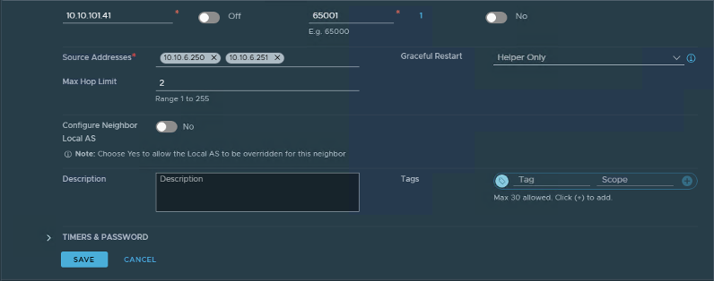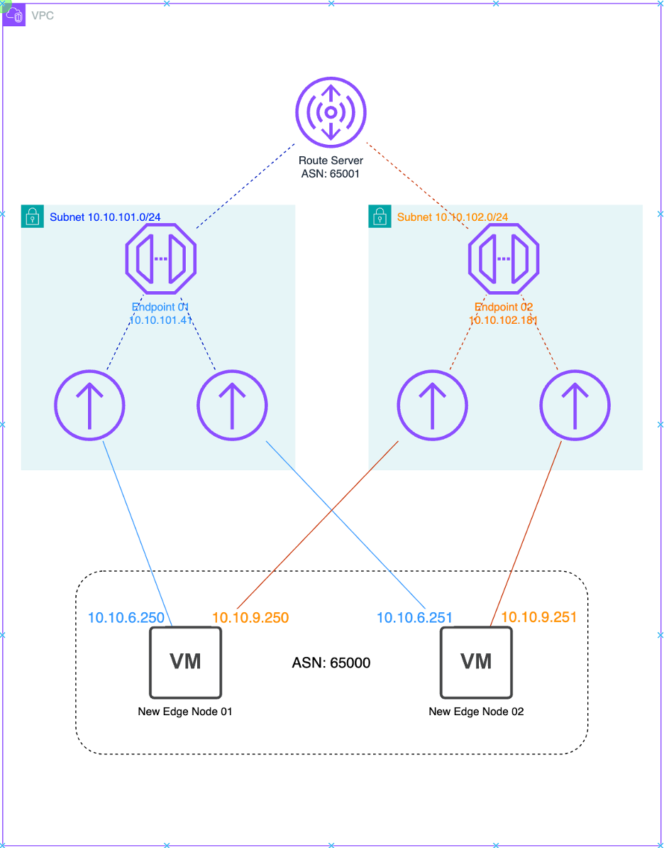 The purpose of this step is to configure BGP, from the NSX Edge appliances to the VPC Route Server.
