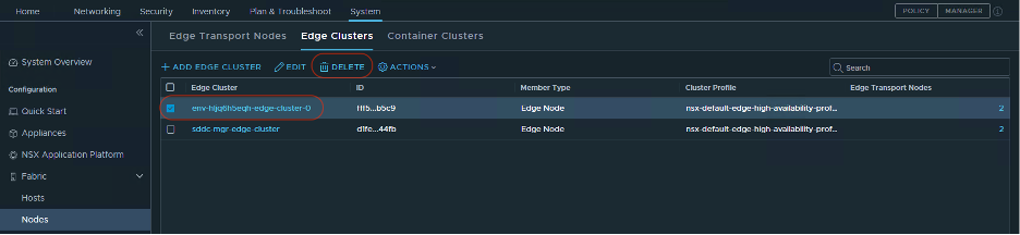 - Navigate to System > Fabric > Nodes then select Edge Clusters.