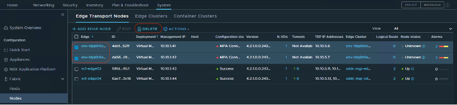 - Navigate to System > Fabric > Nodes then select Edge Transport Nodes.