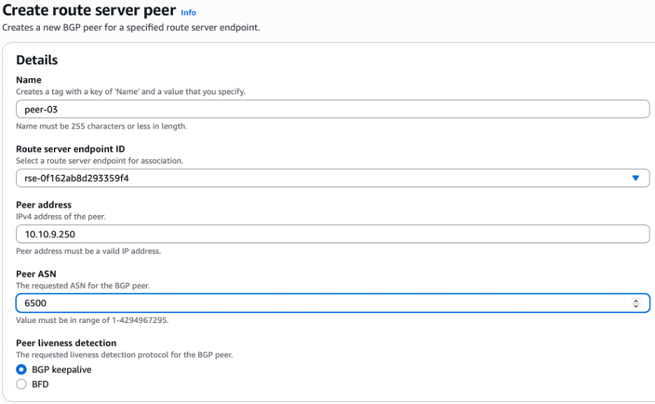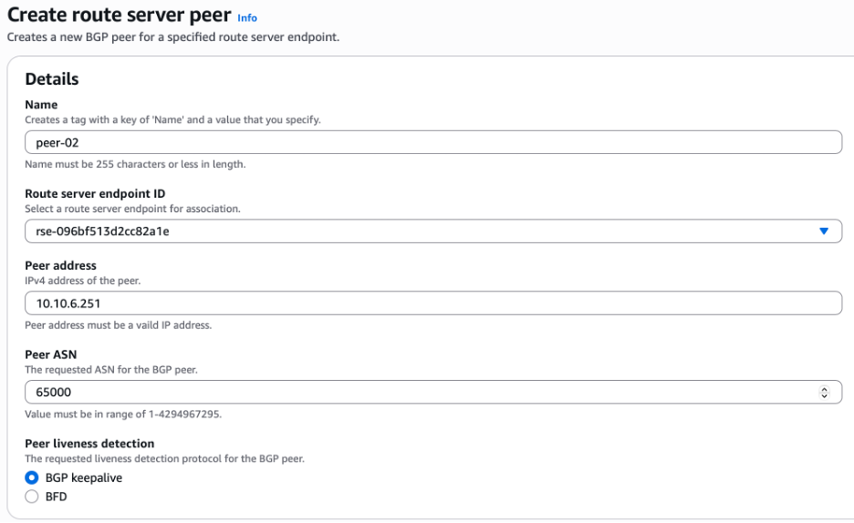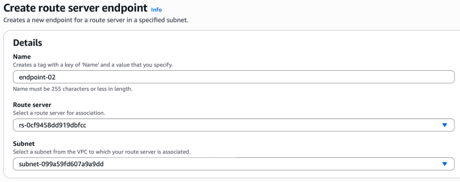 - The IP Address value is the IP address of the second VPC Route server endpoint