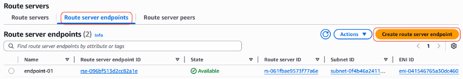 - Select Route server endpoints then select the second endpoint, then select Actions and Delete route server endpoint