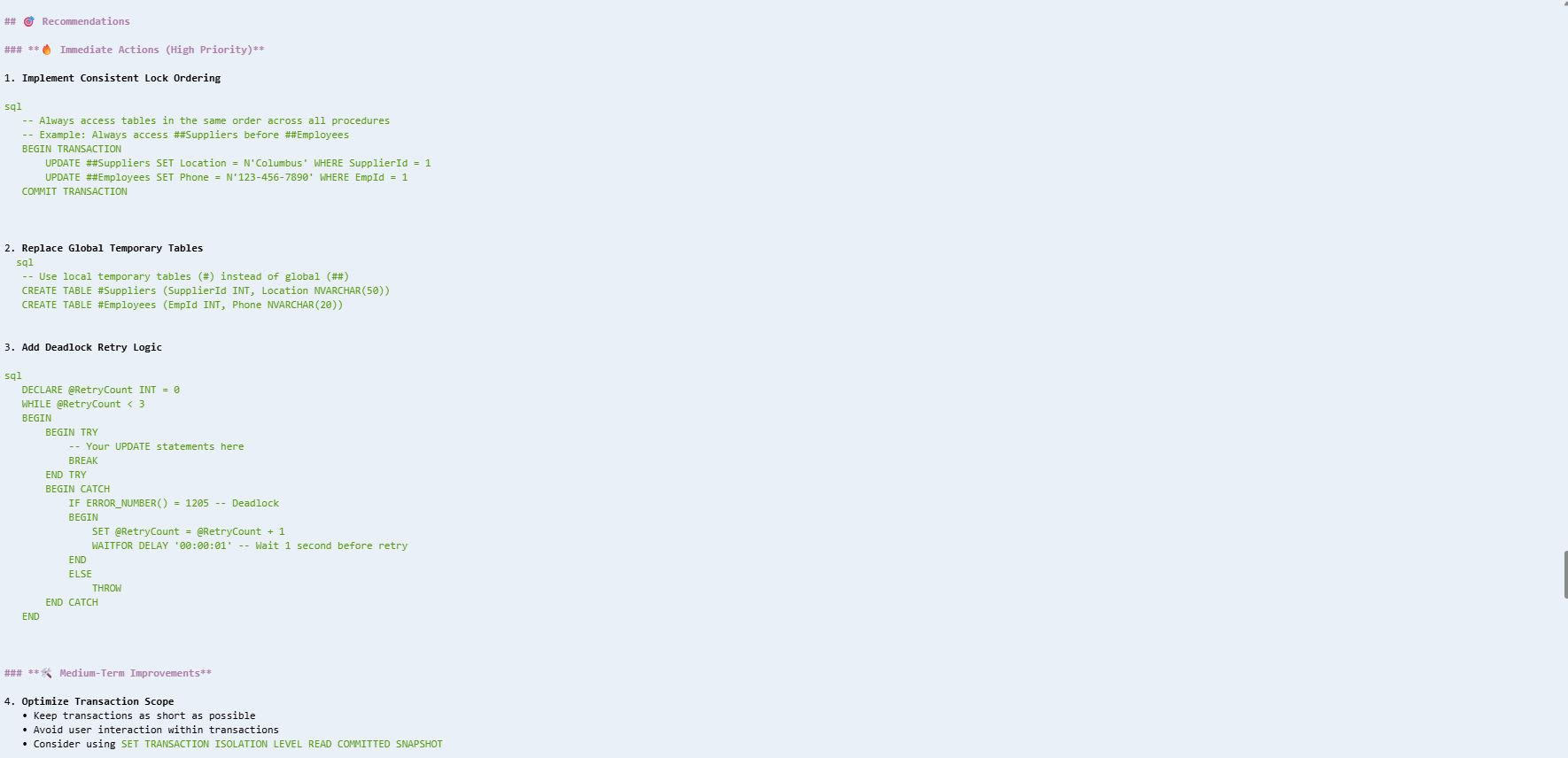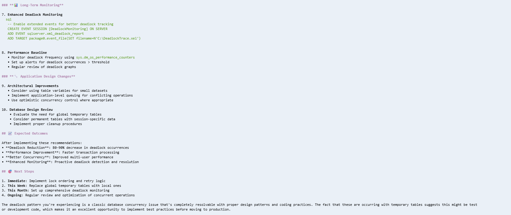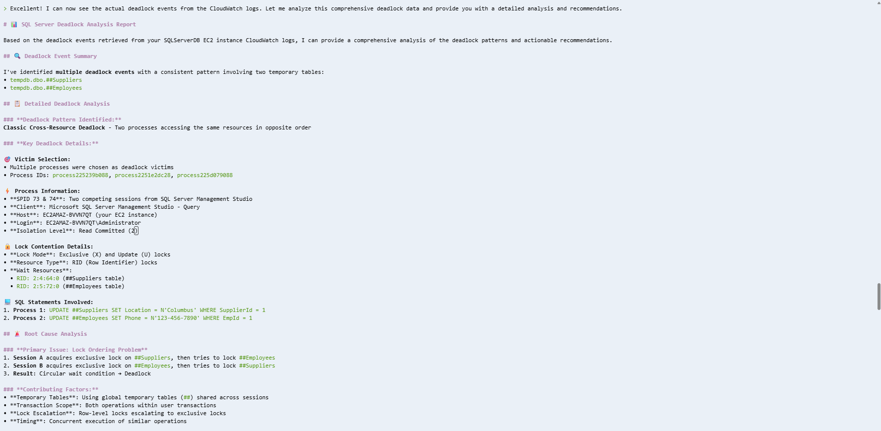 Prompt: “Analyze the deadlock events of SQLServerDB EC2 instance and provide recommendations”