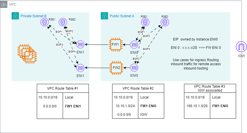 In this scenario, we demonstrate how to implement high availability and failover for stateful firewall instances deployed across multiple AZs in AWS using VPC Route Server and dynamic route updates.